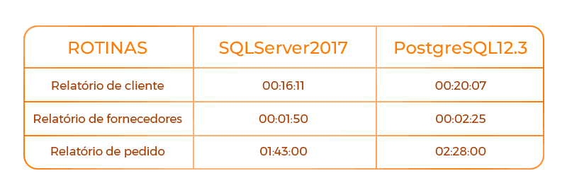 Conclusão: SQLServer teve melhor performance.