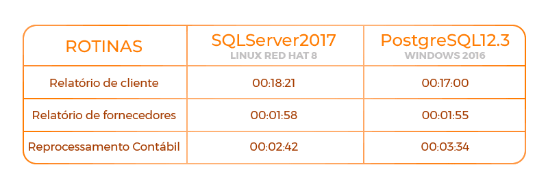 Rotinas com alto processamento ficou mais rápido em PostgreSQL com Linux.